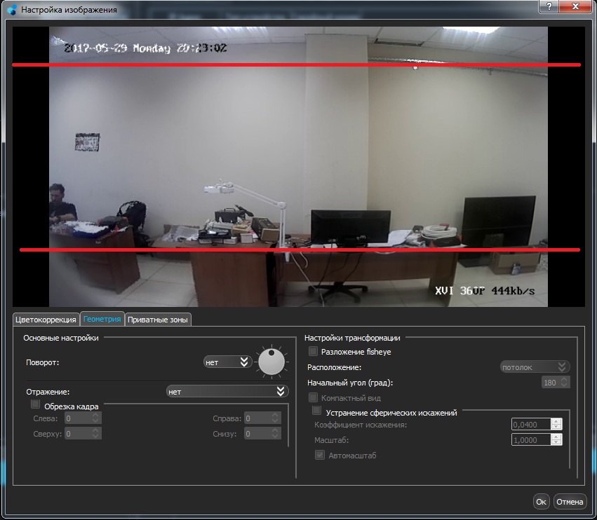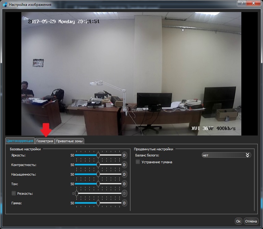 10. После всех настроек убедитесь, что изображение с камеры соответствует Вашим требованиям, и нажмите кнопку «Ok» в правом нижнем углу окна «Настройка изображения».
